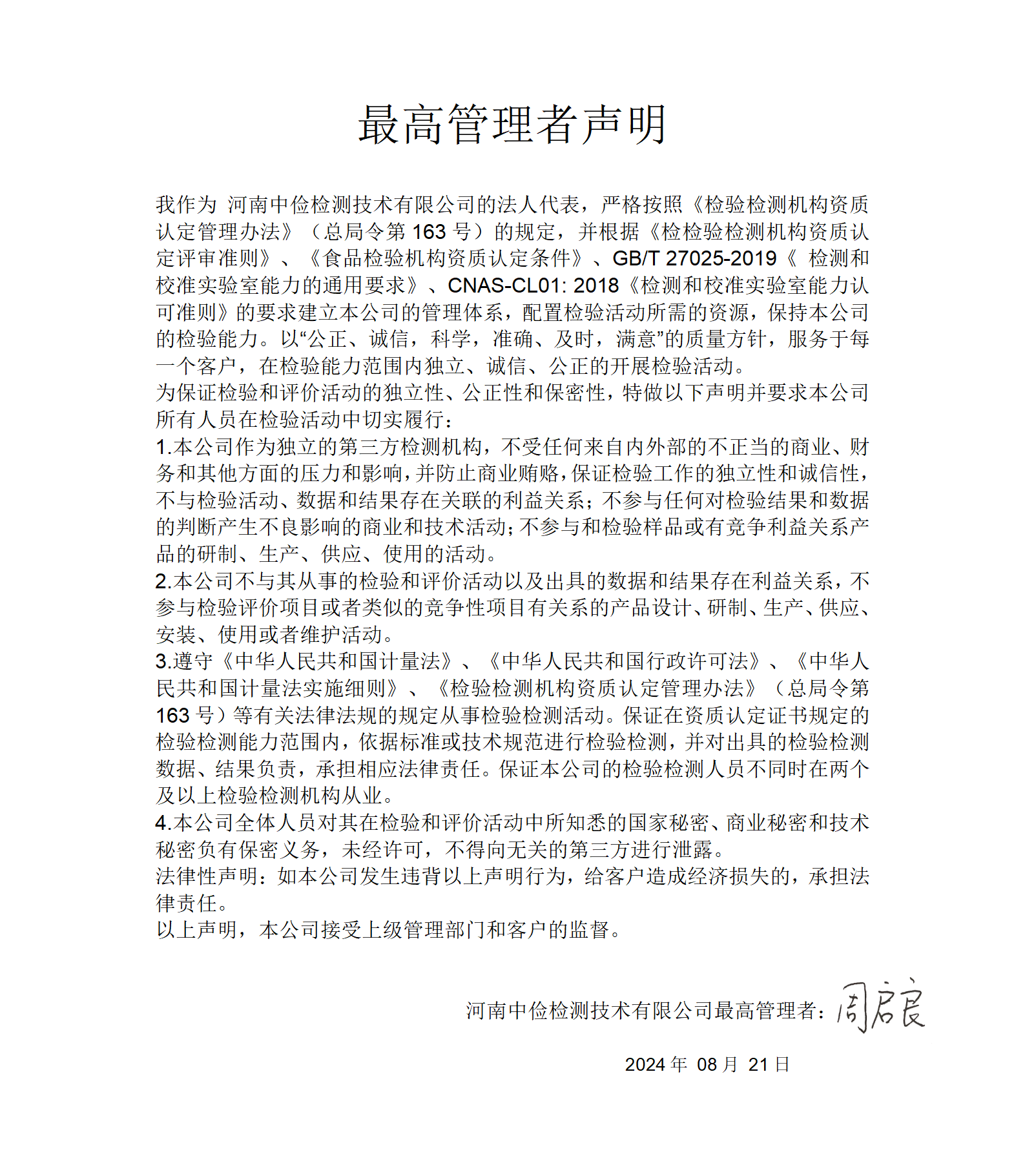 目前,公司已通過河南省市場監督管理局資質認定(證書編號:CMA241600100347,河南省科技廳實驗動物使用許可認證(許可證號:SYXK(豫)2023-0008),國家市場監督管理總局特殊食品驗證評價技術機構(備案號碼:TY04161605),國家藥品監督管理局化妝品注冊和備案檢驗檢測機構(備案編號:20190007),河南省農業農村廳獸藥車間潔凈區靜態檢測備案機構。公司已認證的參數(毒理、理化、微生物)共計近1000項,可以依法承擔普通食品、特殊食品、食品添加劑、食品包裝材料、消毒產品、化妝品、肥料、潔凈室潔凈度、生物安全柜、公共場所衛生、一次性使用衛生用品、生活飲用水及涉水產品等相關產品的理化、微生物、毒理及功能學的檢測檢驗與評價,所出具的報告客觀、公正、科學、準確、及時,被政府審批機構和社會廣泛認可。
